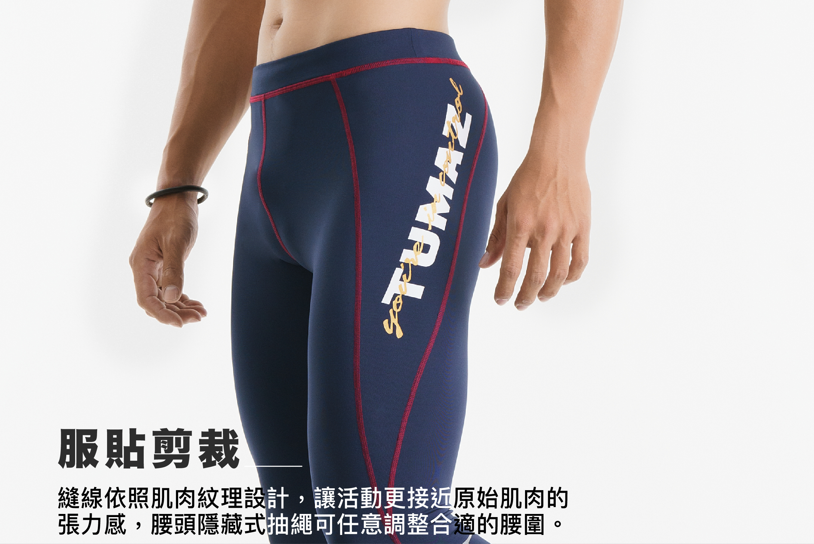 別於女性經典緊身褲擁有的稚嫩觸感與內斂優雅,男性緊身褲配充滿了個性與狂野, 奔放的配色、閃耀著YOU’RE INCONTROL.跟隨著你完成每一次挑戰。