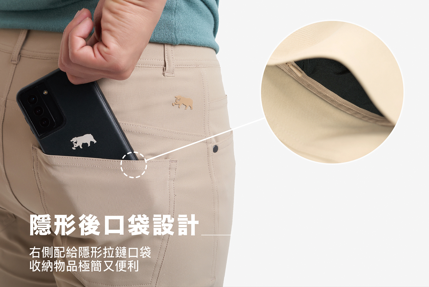 低調且質感優越,整件褲子擁有6個不同的口袋,創造更完美的口袋使用空間。