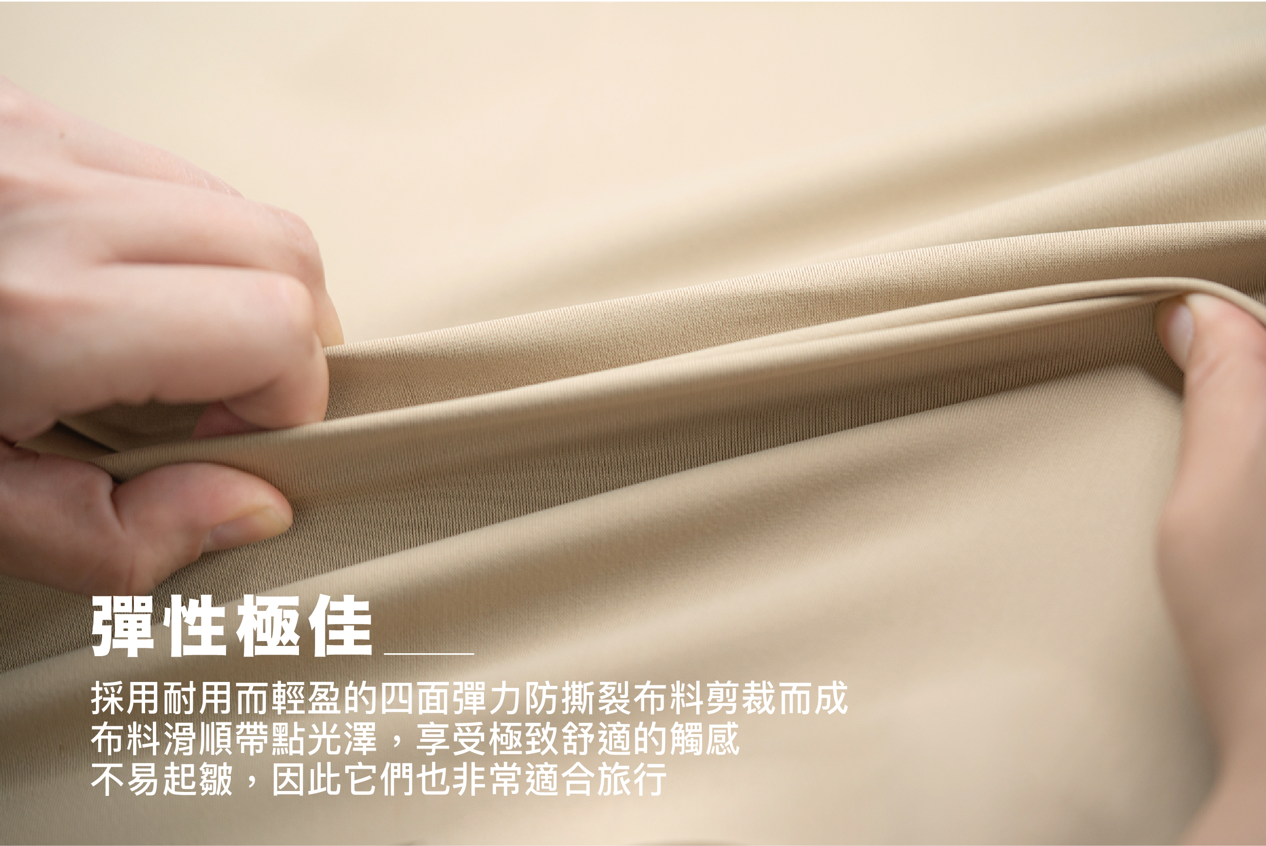 極大化將紡織科技融合入生活,在經編組織架構下,抗皺、抗起球、抗勾紗的強度都大幅提升。