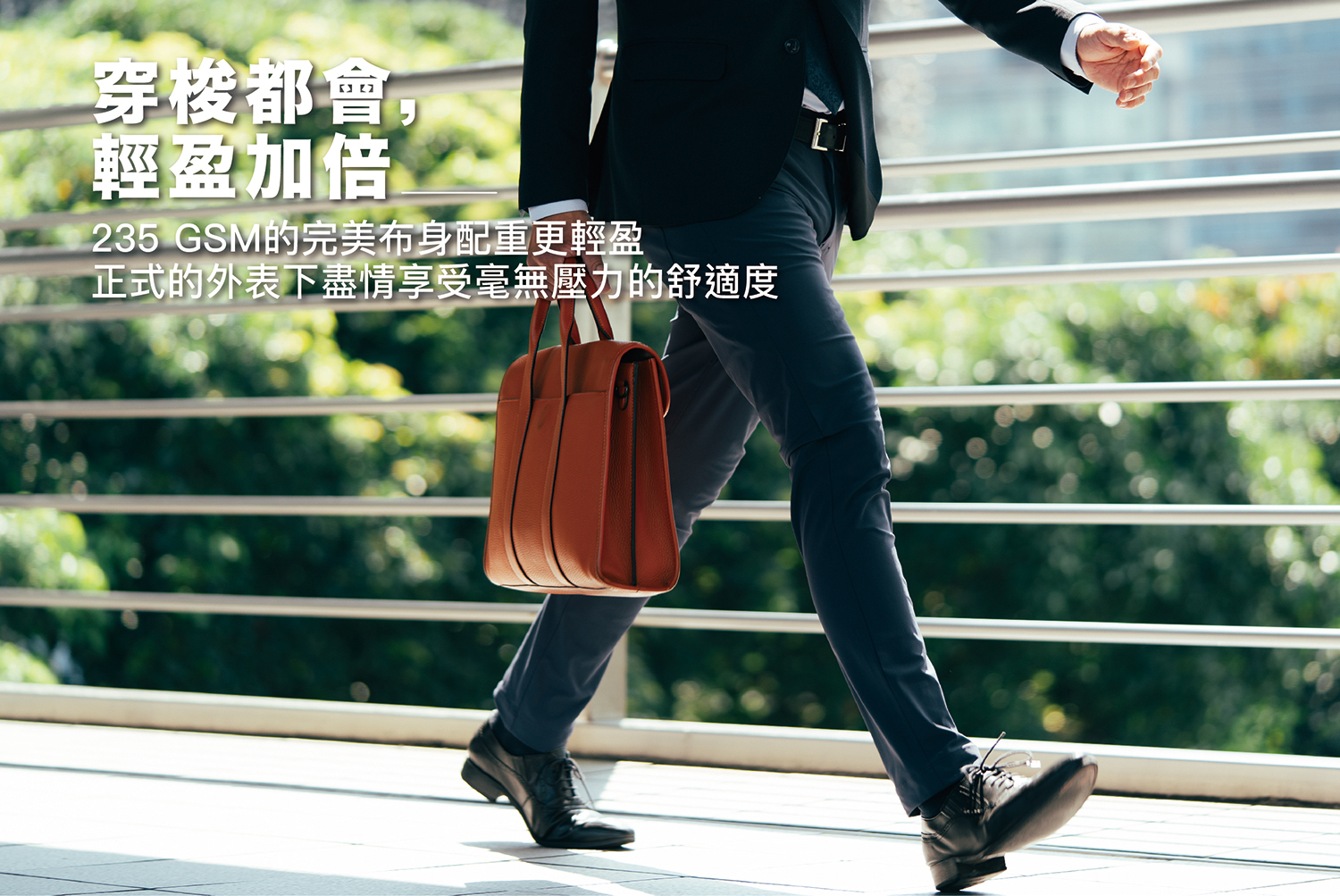 托瑪斯都會長褲,利用了高科技紡織原料的特性,讓褲子在沒有彈性纖維的狀態下,產生良好的四面仿彈效果,同時具備非常優異的透氣性。